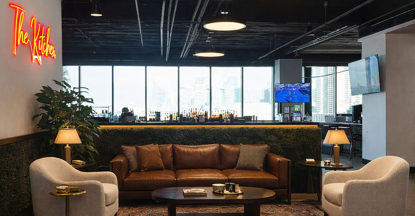 With full food and beverage service throughout the space and expansive views of the Manhattan skyline, it's where members gather, connect, and share the rhythm of the club.