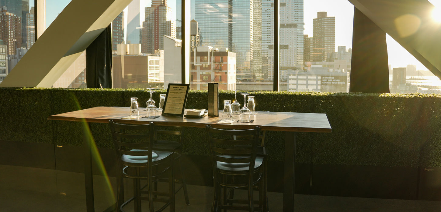 Set above the city, the Outdoor Terrace offers unobstructed views of Midtown Manhattan.